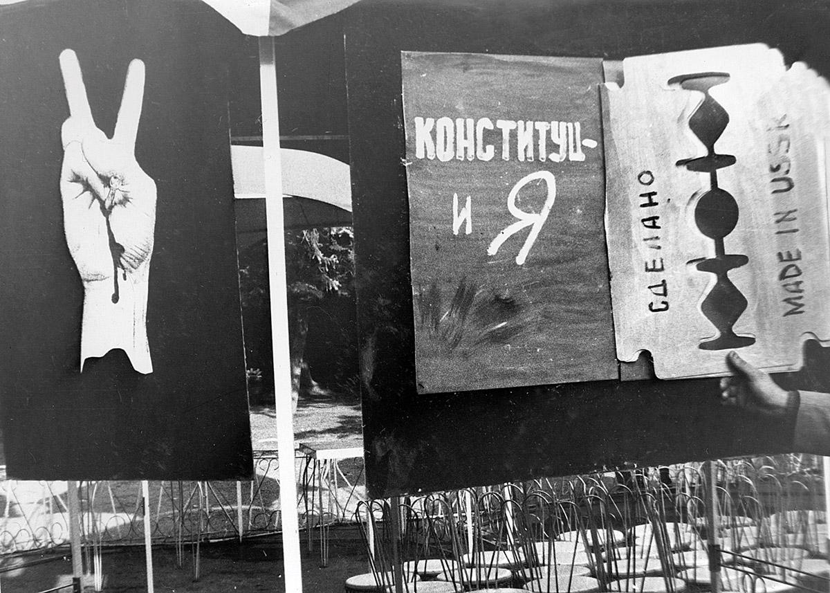 Ըմբոստ նկարիչներն առաջին պաստառները փորձել էին ցուցադրել Նկարիչների միությունում, բայց այնտեղից չարտոնավորված հեղինակներին դուրս էին արել, իսկ աշխատանքներից մեկը նույնիսկ պատռվել էր Միության աշխատողների մեկի ձեռքով։ Ի պատասխան որոշվեց պաստառները ցուցադրել միանգամից Թատերական հրապարակում, առանց միջնորդների։ Հրապարակի շրջակայքում եղած տաղավարների վրա էլ հենց փակցվել էին պլակատները։