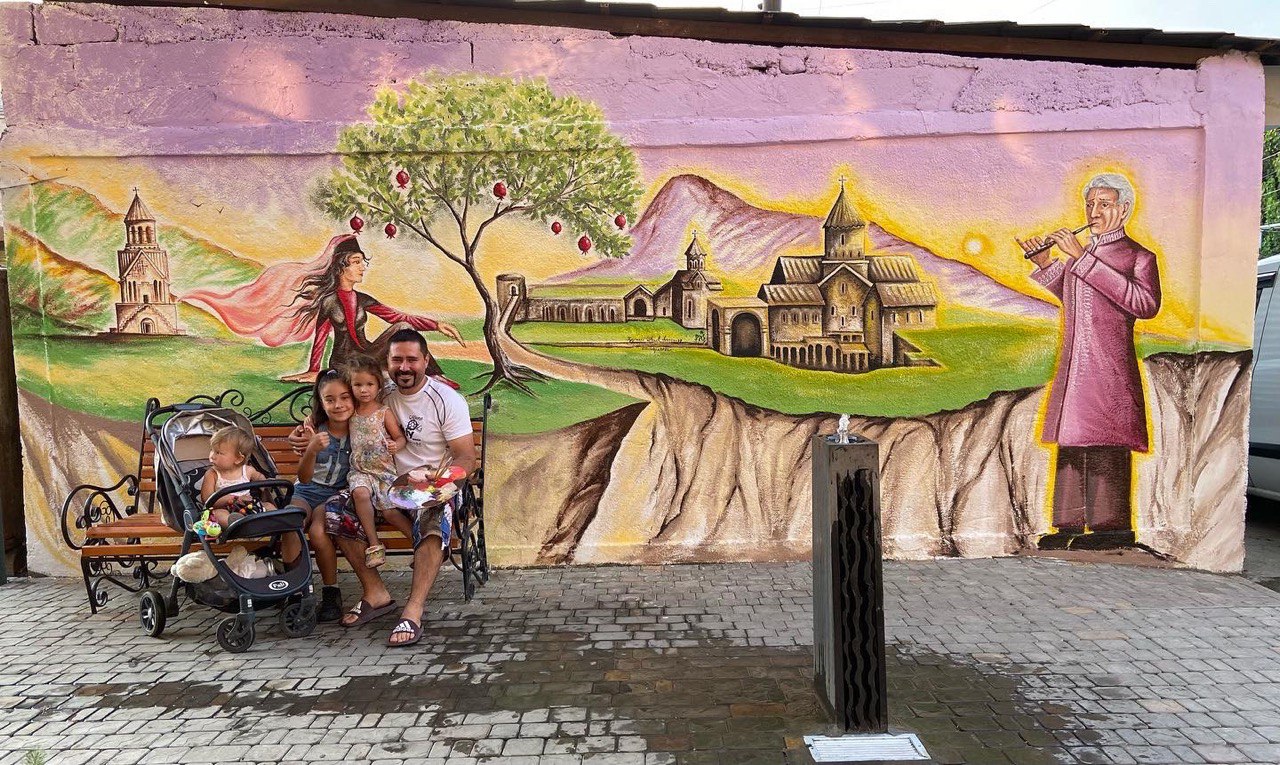 Հետո պատերազմի պատճառով ստիպված էի ընտանիքիս հետ լքել հայրենիքս ու որոշ ժամանակ ապրել Դանիայում։ Այդ հրաշալի երկրում ես շարունակեցի մուրալներ նկարել։ Առաջինն արեցի այն դպրոցի պատին, որտեղ սովորում էր ավագ դուստրս՝ Լեոնան։ Երբ ժամանեցինք Հայաստան, որոշեցի վերջապես այստեղ էլ իմ մի մասնիկը թողել, քանի որ սրանից առաջ երբեք չէինք մնում այնքան ժամանակ, որ հասցնեի։