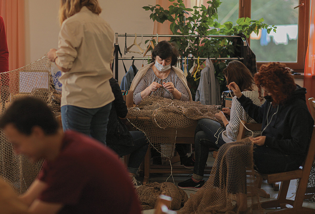 Հետո ծավալները շատացան, առաջնագիծն անընդհատ պահանջում էր ավելի ու ավելի շատ պաշտպանիչ ցանցեր։ Տեսնելով, որ աշխատանքը շոշափելի արդյունքներ է տալիս և օգնում պատսպարվել ԱԹՍ-ների կարկուտից՝ դպրոցն օգնող ձեռքեր խնդրանքով հայտարարություն տարածեց։ «Հենց հաջորդ օրն այնքան մարդ եկավ, որ ստիպված էինք հերթապահություն սահմանել։ Շատերն էին փախչում տնիցտեղից, հեռուստացույցից, հեռախոսներից, ու ցանց գործելը լավագույն թերապիայի տարբերակն էր։ Ոմանք գործում էին աղոթելով, ոմանք՝ անիծելով թշնամուն։ Մի կին այնքան ձիգ էր գործում, ասես Էրդողանի վզի օղակը փաթաթեր… իհարկե, նրա գնալուց հետո քանդում-նորից էինք գործում, բայց հաջորդ օրն էլի թույլ էինք տալիս մասնակցել։ Մի աղջիկ կար, մայրը չէր կարող գալ, նա էր գալիս-տանում կտորի դետալները, որ մայրն աղոթքներ գրի անկյուններում»,– պատմում է Վոլդորֆի ներկա ծնող, ցանցագործության ժամանակավոր խմբակի համակարգող ու հավերժ դասախոս, մարքեթոլոգ Իրինա Մինասյանը։ Պատմում է ու ցույց տալիս տուփերի մեջ դասավորած փոքրիկ փայտեր խաչերը։ Դպրոցի երգի ուսուցչուհի Արաքսն է բերել, օրհնված խաչերն են, ամրացնում են ցանցերի անկյուններում՝ գաղտնագրության շտայներական ուսմունքի ոգով։