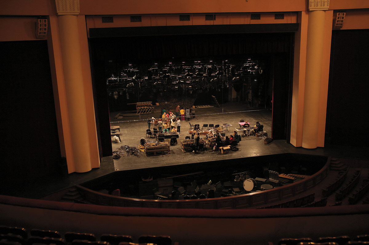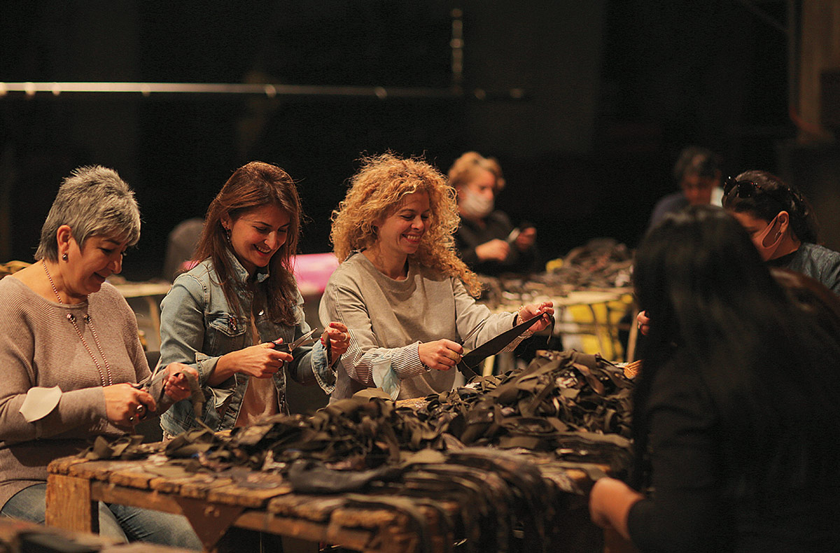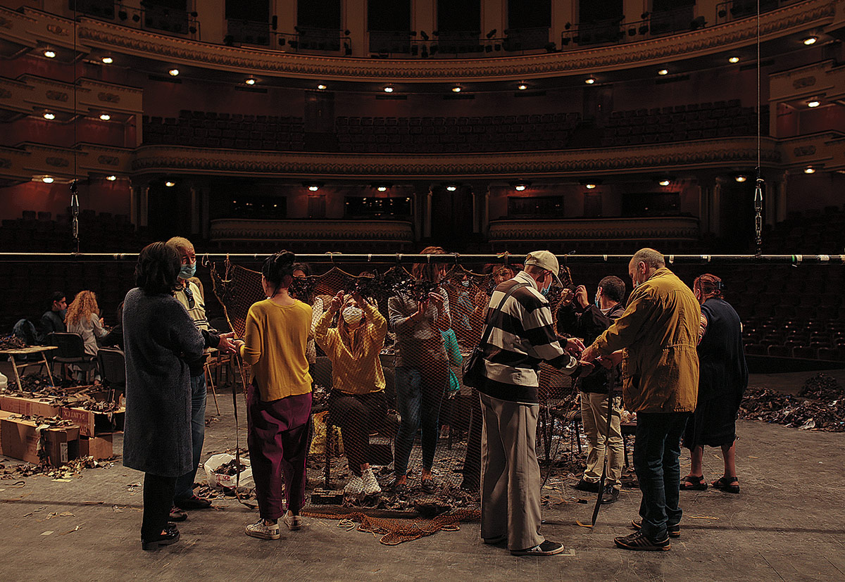 Պատմական բեմի պատերը, բարեբախտաբար, մեխերով չծակվեցին. փրկեցին բեմի դեկորների համար կիրառվող շտանգետները, որոնք ծառայեցին որպես ձող ցանցերը կախելու համար։ Ընդհանուր առմամբ, ցանցային ադմինիստրացիայի օպերայի թևի աշխատանքային միակ տարբերությունը սա էր։ Հումքը նույնն էր՝ զինվորական համազգեստի թափոն, տեխնիկան՝ նույնպես։ Թեև 47 տարի թատրոնում աշխատած կոստյումեր տիկին Նինան այս հարցին էլ ստեղծագործաբար մոտեցավ՝ տերևի տեսք ստանալու համար պտտելով կտորների մնացորդները։