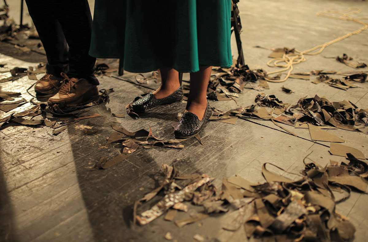 Մեներգչուհի Սիրանույշ Գասպարյանը կտորի մի պատառիկ է վերցնում ու միանգամից ֆիքսում. «Սա հաստատ Աննա Կնյազյանն է կտրատել, սա նրա ձեռագիրն է»։ Բոլորը ժպտում են, իսկ ինձ ու լուսանկարչին բացատրում, որ Աննան ջութակահար է։ Մասնագիտական հումոր։ Մենք շարունակում ենք չժպտալ... Բոլորից հեռու անկյունում մի սպիտակահեր տղամարդ կռիվ է տալիս ցանցի հետ, փորձում միայնակ երիզել։