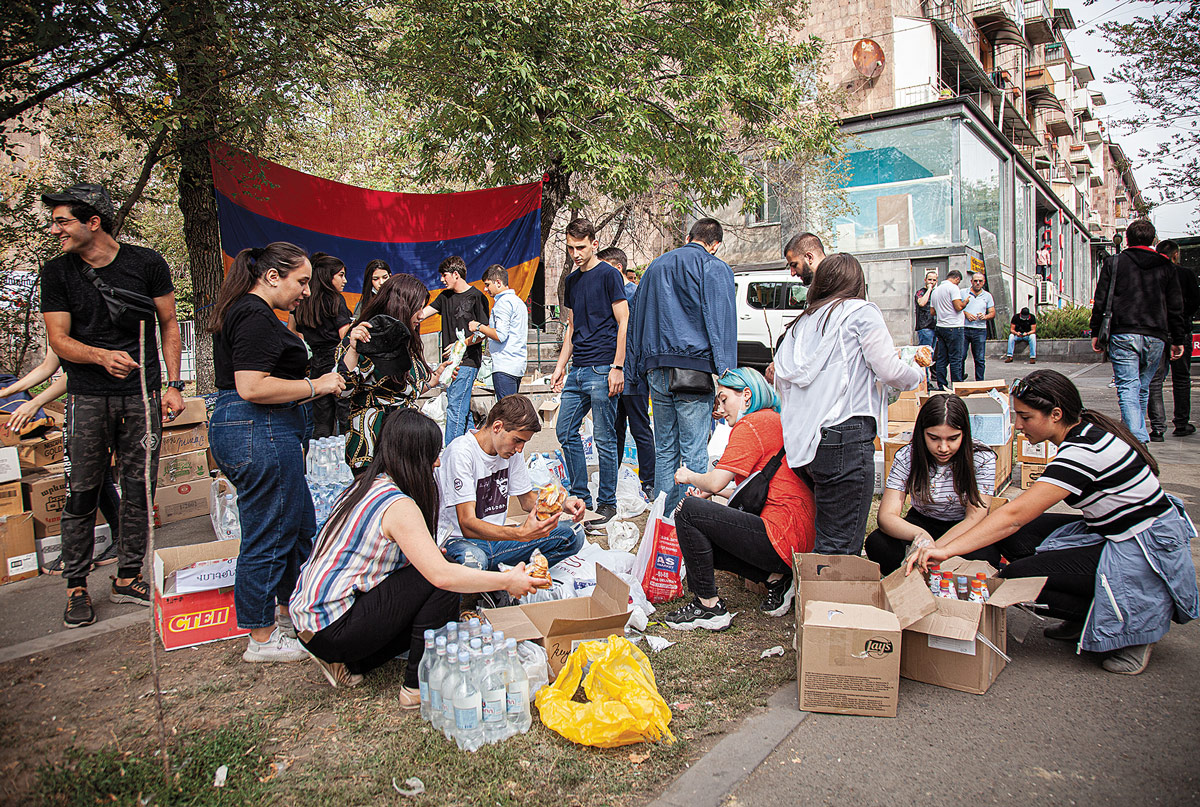 Կամավորների ջանքերով հավաքագրված օգնությունը բաշխվում է նաև պատերազմի հետևանքով Արցախից Երևան և այլ բնակավայրեր տեղափոխված ընտանիքներին