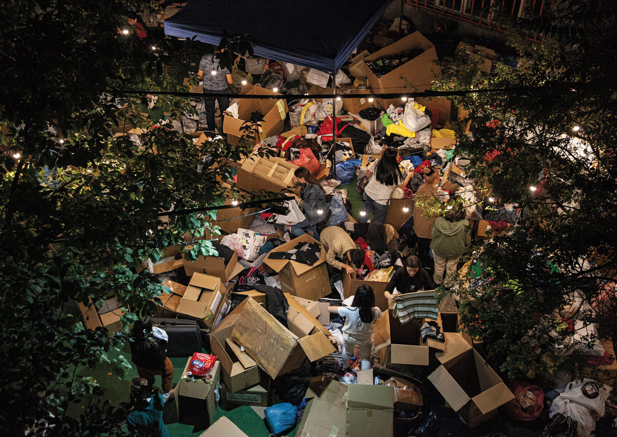 Երեկոյան ժամը 6:38 էր, Երևանի Կոմայգու շտաբի կամավորներն անհանգիստ աջ ու ձախ էին նայում. սպասում էին։ Երկու շաբաթից ավելի է՝ ամեն օր գերմանական ճշտապահությամբ նույն ժամին մոտակա շենքերից ամուսիններ էին գալիս՝օգնելու կամավորներին տեսակավորել օրվա ընթացքում հավաքվածը։ Ուղիղ 6:40 մտան շտաբ։ Ամուսիններն աշխատում էին լուռ, արագ, արդյունավետ։