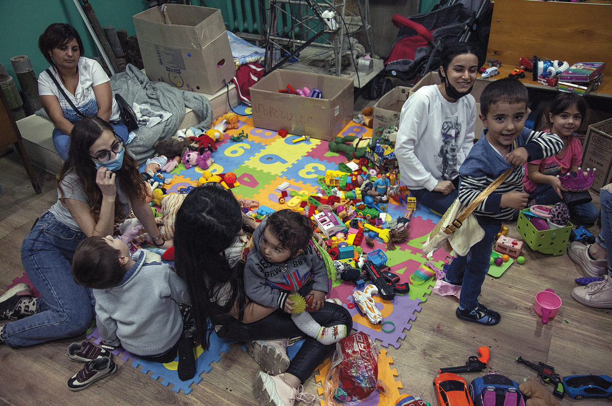 Կամերային պետական թատրոնի խաղասենյակներից մեկում, մի խումբ կամավորականներ Արցախի երեխաների զբաղեցնում են տարբեր խաղերով