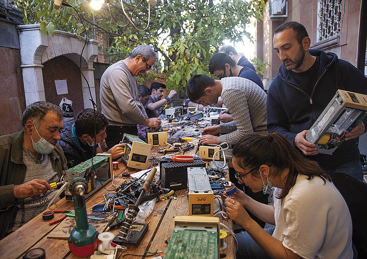 Ժողովրդական սոցապի ամենատղամարդկային կետը Պռոշյան 12 հասցեում էր. այստեղ հոսանք էին ստանում։ Մինի պոլիտեխնիկ հիշեցնող շտաբում ամենուր լարեր էին, ups-ներ, տարբեր մարտկոցներ, բրուտալ գործիքներ։ Առաջնագծում կապի միջոցներն ու ջերմահեռադիտակները լիցքավորելու համար հոսանք ստեղծելու, առաջացնելու, մոգոնելու համար լուրջ հաշվարկ էր պետք։ Ամսի 5-ին հավաքված թիմն ուներ մեկ առաջադրանք. վերաձևափոխել հին ու անսարք ups-ներն ու ստանալ մոտ 300-500 հատ գործող սարք, որոնք 12 V հոսանքը կդարձնեն 220 V։