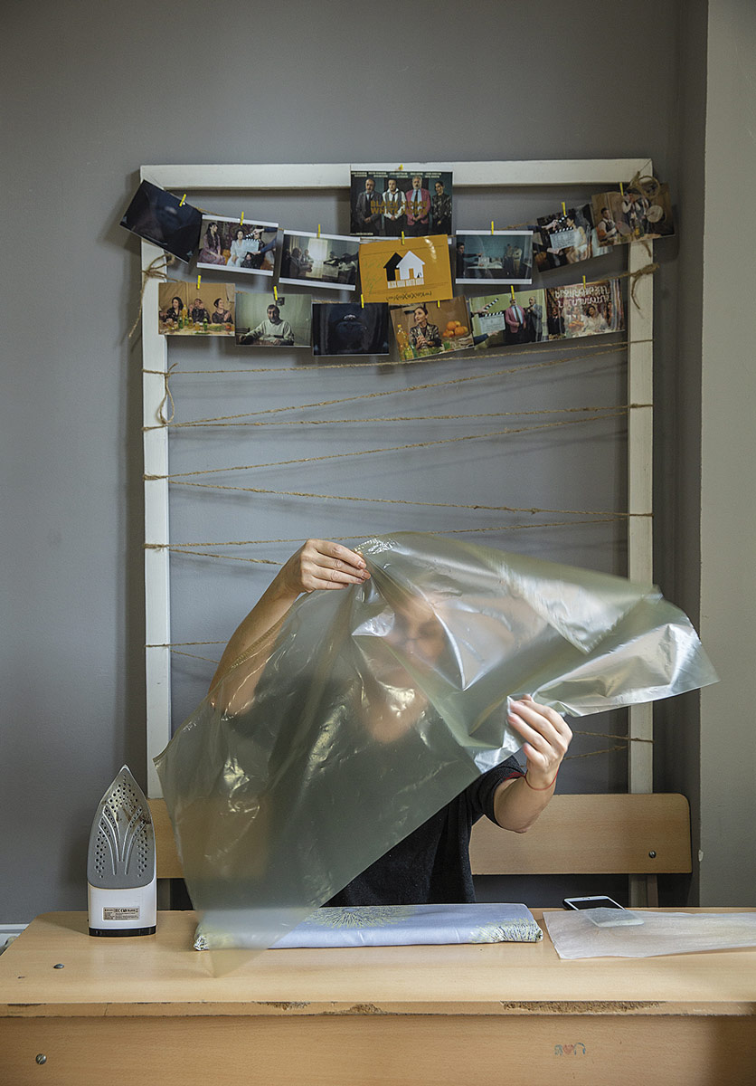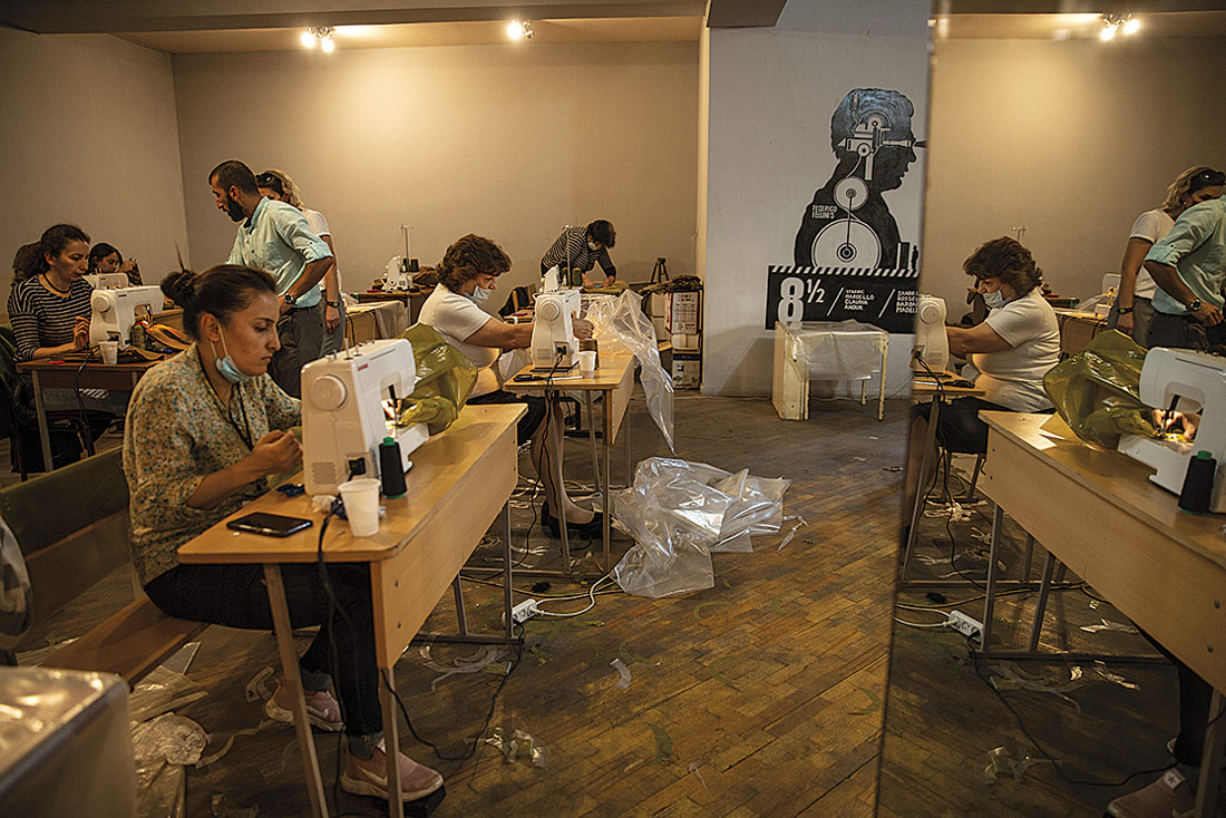 «Դաժձևիկ» նախաձեռնության կամավորները Թատրոնի և Կինոյի պետական ինստիտուտում թիկունքի համար անձրևապաշտպան և այլ անհրաժեշտ պարագաների պատրաստման աշխատանքներ կատարելիս