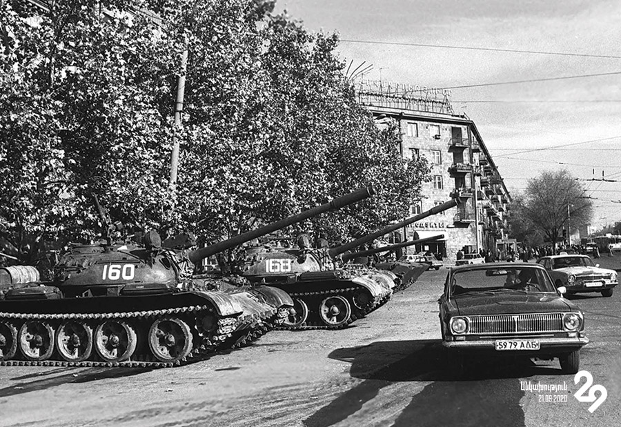 Անկախացման օրերին մոտ տասը-տասնմեկ տարեկան էի։ Հիշում եմ, որ իմացանք՝ զինվորներին դիմավորելիս օդանավակայանում մարդիկ են մահացել։ Այդ ժամանակ՝ նույնիսկ այդ մանկապատանեկան տարիքում, հայրենասիրական մղումներն արդեն գլխումս կային։ Այդքան զինվոր կյանքումս չէի տեսել։ Ռուս, ուզբեկ, ղազախ։ Դա էլ էր ինձ համար նոր. նրանք բոլորը ռուսախոս էին ու այլ ազգերից։ Փակել էին Բաղրամյանն ու պարետային ժամ էր հայտարարվել։ Փողոցի ամենավերջում ակտիվիստներն էին տեղակայված՝ կանգնած, նստած, մատրասներին պառկած։ Ողջ օրն այնտեղ էին, որպեսզի չթողեն, որ իրենց մեջքի հետևում կանգնած տանկերը մտնեն Օպերայի հրապարակ։ Հիշում եմ, որ մի օր ցուցարարները բերել էին Լենինի հատորներն ու շարել հենց տանկերի ակերի առջև, թե առաջ գաք, առաջինը Լենինի վրայով եք անցնելու։ Չեմ կարծում, որ դա իրենց զսպելու էր, եթե հրաման ստանային, անցնելու էին գնային, բայց, միևնույն է, էպիկ էր։