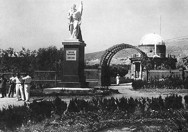 Բազալտ: Քանդակագործ՝ Սուրեն Ստեփանյան, ճարտարապետ՝ Հայկ Ասատրյան։ Կանգուն տարիներ՝ 1934–1990 թթ.: Բարձրությունը պատվանդանի հետ՝ 6 մետր 20 սանտիմետր: Վայրը՝ Ղուկասյանի (այժմ՝ Ուսանողական) պուրակ՝ Երևանի պետական համալսարանի դիմաց։