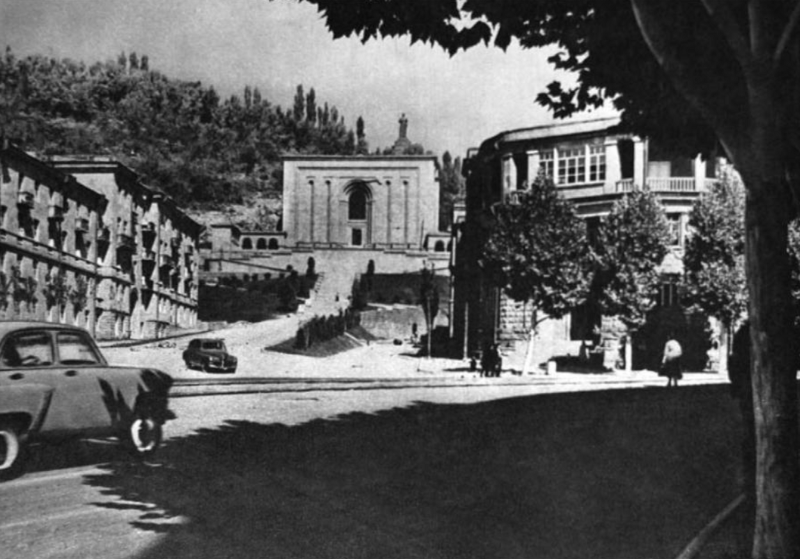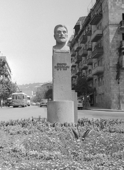 Բազալտ: Քանդակագործ՝ Սուրեն Ստեփանյան։ Կանգուն տարիներ՝ 1934–1988 թթ։ Վայրը՝ Ազիզբեկովի (այժմ՝ Սախարովի) հրապարակ: