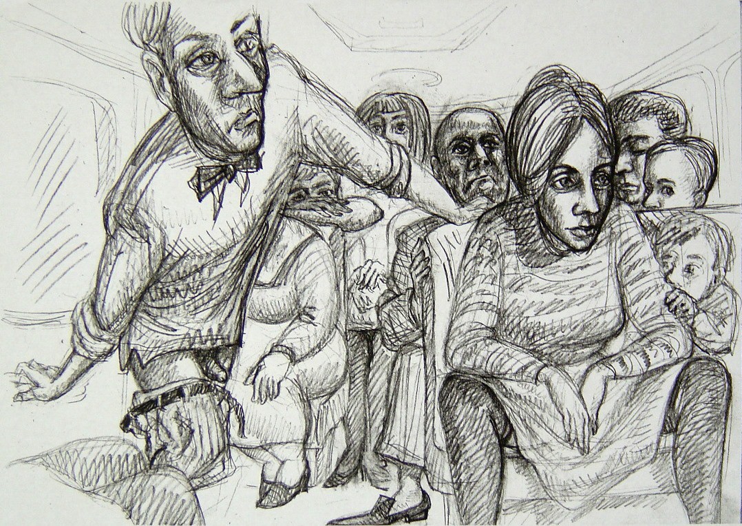 Սամվել Սաղաթելյանի գրառումը Ֆեյսբուքում․ «Գրոտեսկային Իրականություն» շարքից 90 ականների կեսերից մինչև 2000 ականների սկզբերի «Վարորոդներ և ուղևորներ» սերիան նորից ակտուալ դարձավ՝ վարորդներ vs ուղևորներ, ուղևորներ vs ուղևորներ վերջին դիմակայության ֆոնին - Զսպումներ, սեքսուալ անբավարարվածություններ, կուտակված էներգիա, ագրեսիա, ծխողների և նրանց տղամարդկային իրավունքները պաշտպանող կանանց հիստերիա, շոգ, քրտինք....կուտակված մի մարշրուտկայի տարածքում։»