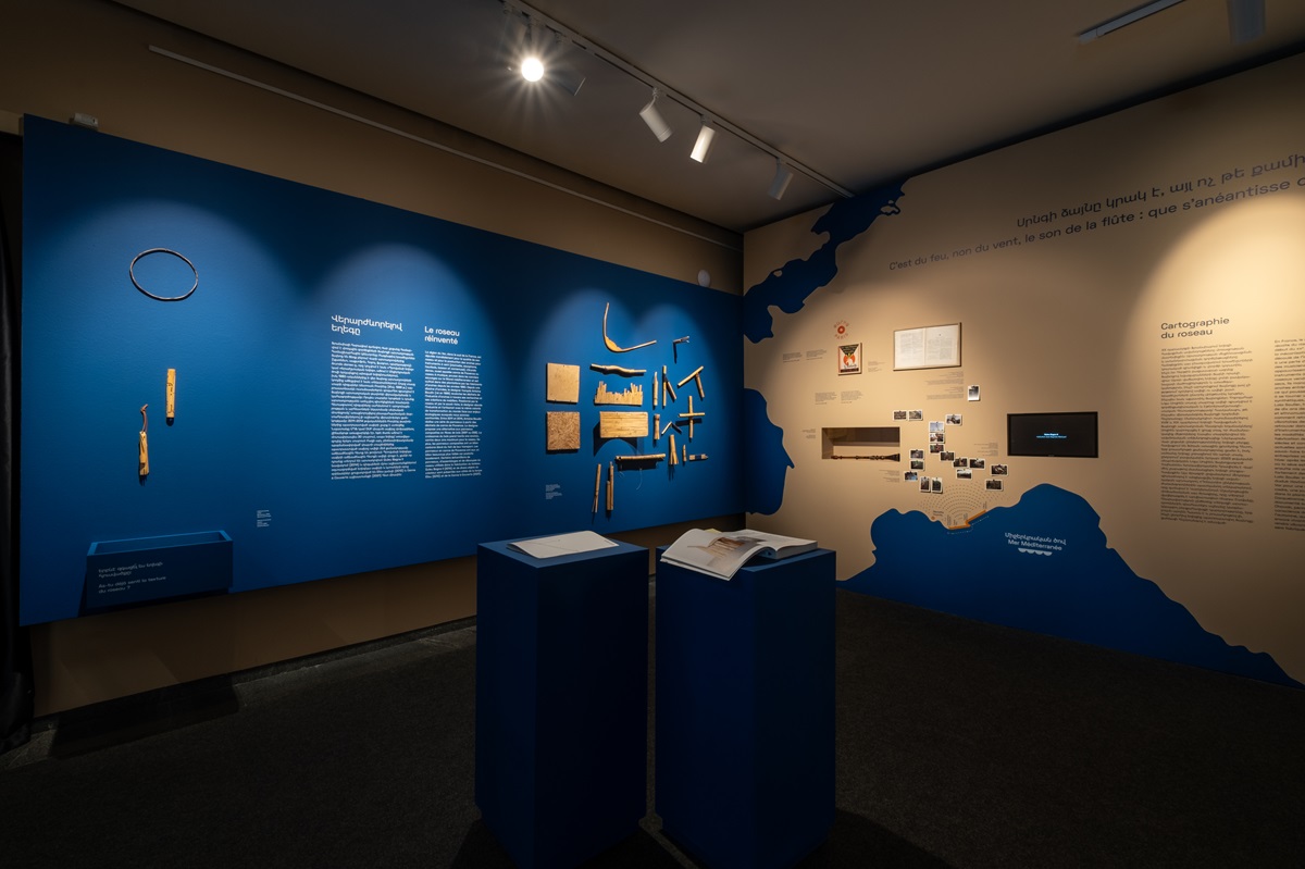 Հայաստանում, ի տարբերություն Ֆրանսիայի, մտածողությունն արտադրական չէ, այստեղ վարպետները գիտեն՝ ինչպես եղեգից արհեստագործական վարպետությամբ պատրաստել փողային գործիքների (դուդուկ, զուռնա) ձայնոցները, հարգելով քաղելու եղանակն ու մշակելու ձևերը, որի մասին էլ պատմում են ցուցադրության մյուս հատվածները։ Նայիրին պատմում է, որ Հայաստանում մինչ օրս կիրառվում են թուրքերեն «ղամիշ» կամ գերմաներեն «մունշտուկ» բառերը, որոնք օտարածին են, իսկ Կոմիտասն իր գործիքագիտական հոդվածներում շրջանառության մեջ էր դրել «ձայնոց» եզրը, որը լիարժեք նկարագրում է ձայն հանող անոթի դերը։ «Ցուցադրությունը նաև միջոց է տեքստերի միջոցով լեզուն վերարժևորելու, լեզվի հետ խաղալու և ստեղծագործելու. Կոմիտասի եզրից ցուցադրության համար ծնվեցին ու շրջանառության մեջ մտան «ձայնոցագործ» և «ձայնոցադարան» բառերը»,- մանրամասնում է Նայիրին։